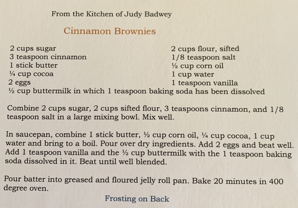 This recipe was handed down from Jim’s paternal grandmother, Emma Mae (Gustin) Eaton.  His sister, Maggie, is credited with establishing the nickname, Grannie-O for their “other” grandmother.