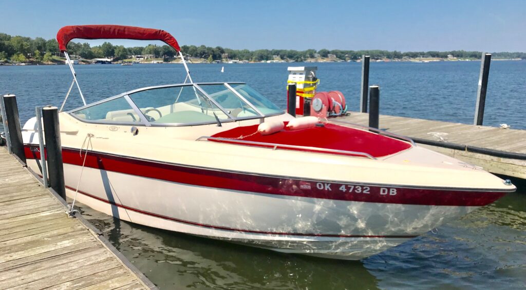 The first day we received delivery of the boat, the owner of the company gave us an on-the-water demonstration. I thought it was complicated until we bought our current Ford Explorer! Anyway, after he left, we loaded up my mother and took it out for a cruise. As luck would have it, a gravel bar had shifted by an island, and we ran aground. Unlike the events I had with Wayne’s boat shear pin, we sucked up substantial materials into the engine. There we were, stranded in the middle of the lake (no cell phones then), no water and no one else in sight. Finally, the lake patrol came by and, instead of towing us, offered to call someone else to come to our aid. It seemed like hours waiting in the hot sun before a boat from Tera Miranda came to our rescue. It was weeks before the boat was repaired! We learned quickly to keep water in the boat and, when they became available, a well charged cell phone with us.