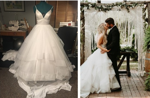 Recently I have been sewing baby clothes, teepees and quilts for my kids and grandkids. I have altered many wedding gowns which used to be for a living but now just to keep up my skills. The pic of the gown is my daughters. I hemmed it twice because she changed shoes.