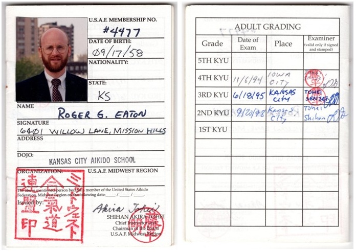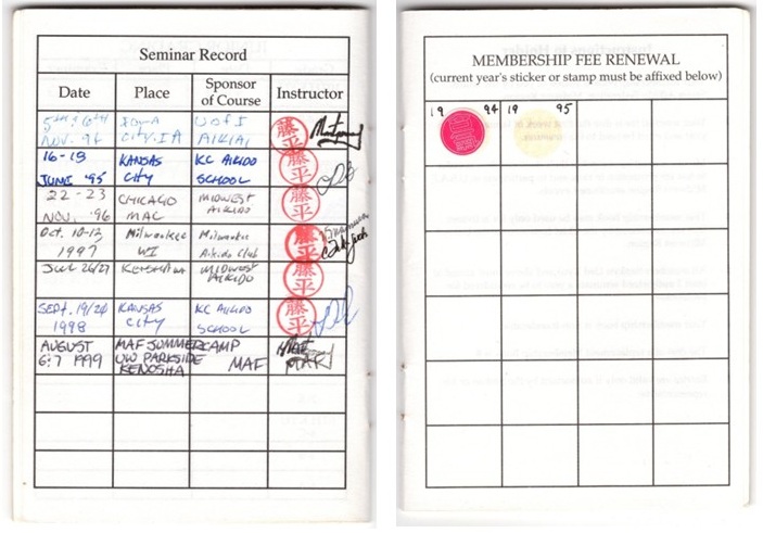 I attended a couple seminars in Manhattan, Kansas. They were conducted at the Kansas State University Recreation Center. They didn’t stamp my book, though. At the first seminar, I heard a voice say, “Uncle Roger.” It was my niece, Rachael (Eaton) Breidenthal. She was a student at K-State. When I explained that Rachael was my niece, the guys from the Kansas City Aikido School said, “Yeah, sure.”