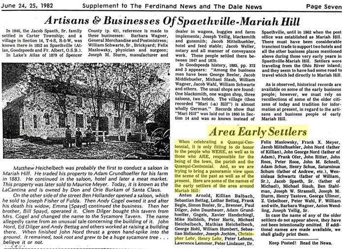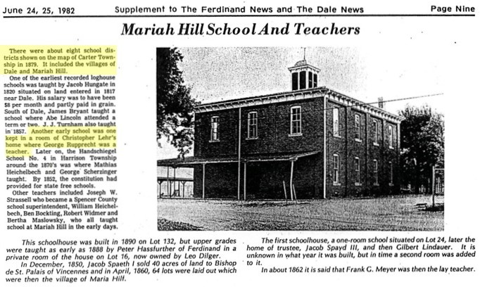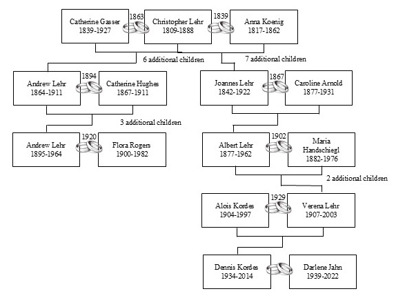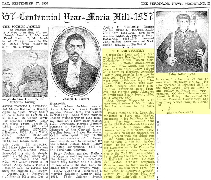 I began corresponding with Dennis Kordes in 1998. His ancestor is Joannes Adamus “Adam” Lehr, the first son of Christopher and Anna (Koenig) Lehr. Dennis lived in Bloomfield, Indiana, near Mariah Hill.