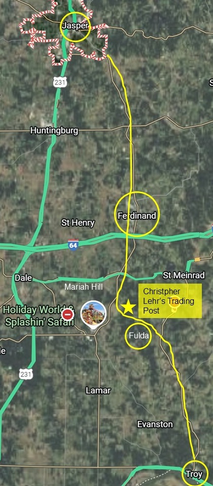 Many of the German immigrants had funds to acquire land. It was common for them to space the towns by the distance that a horse-drawn wagon could travel in a day. In this case, the locations of Fulda and Ferdinand were selected to provide rest stops for the travel between Troy, Indiana (on the Ohio River) and Jasper, Indiana. A priest assigned to the Jasper area, devised that urban plan, so he could service his vast area.