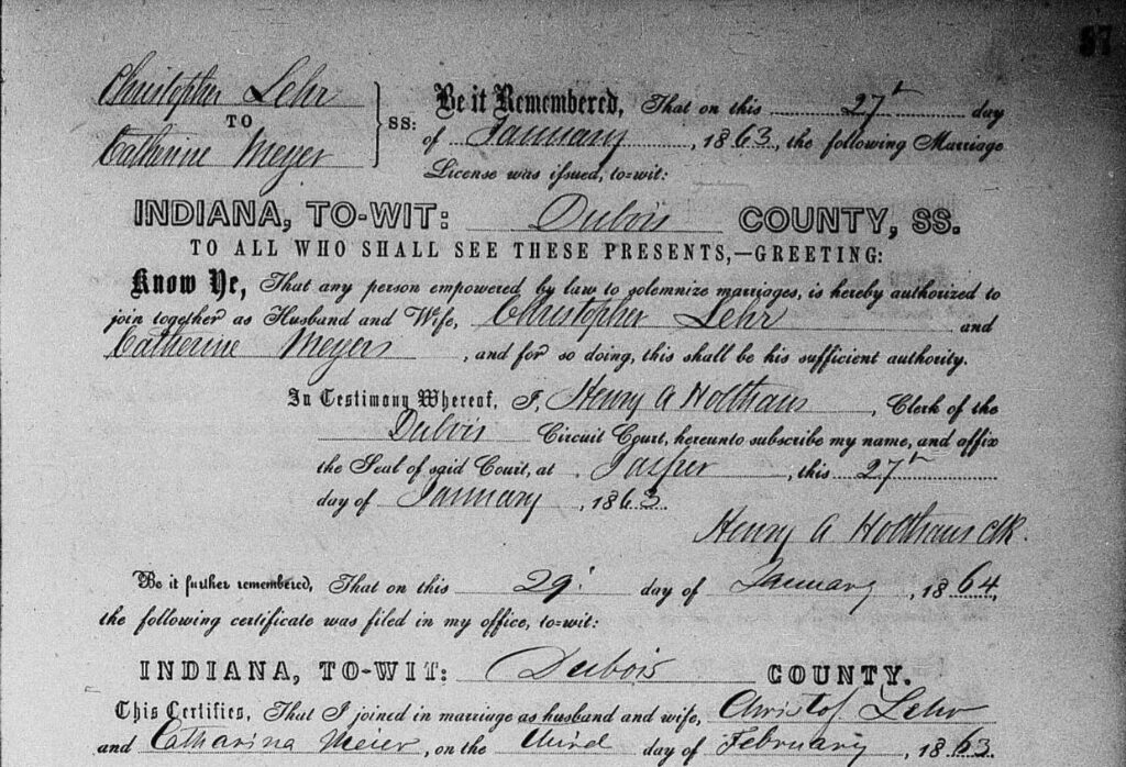 - Christopher Lehr – marriage record to Catherine (Gasser) Meier