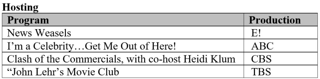 John has entertained billions of people through stand-up comedy and television programs. His credits include: